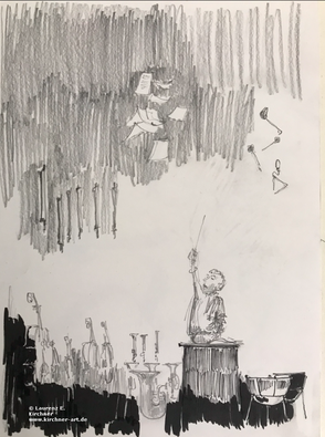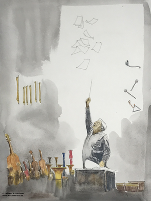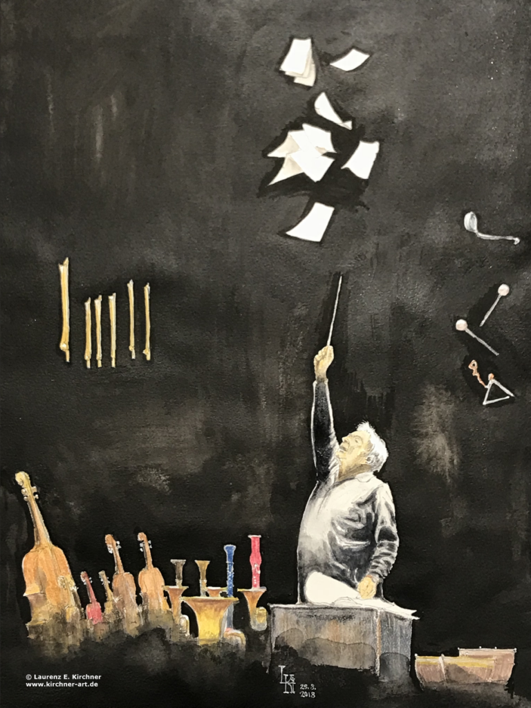 Das Aquarell zum 100. Geburtstag von Leonard Bernstein lässt sich anhand der verschiedenen Abbildungen mal als Werdegang verfolgen.