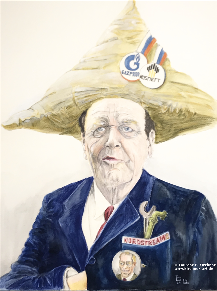 Nach seinem Abschied als Bundeskanzler 2005 konnte er nahtlos für seinen Freund Wladimir Putin beim größten Konzern Russlands, Gazprom, den politischen Schraubenschlüssel da ansetzen, wo außer Herzblut noch erheblich mehr die politischen Pipelines zum tragen kommen.