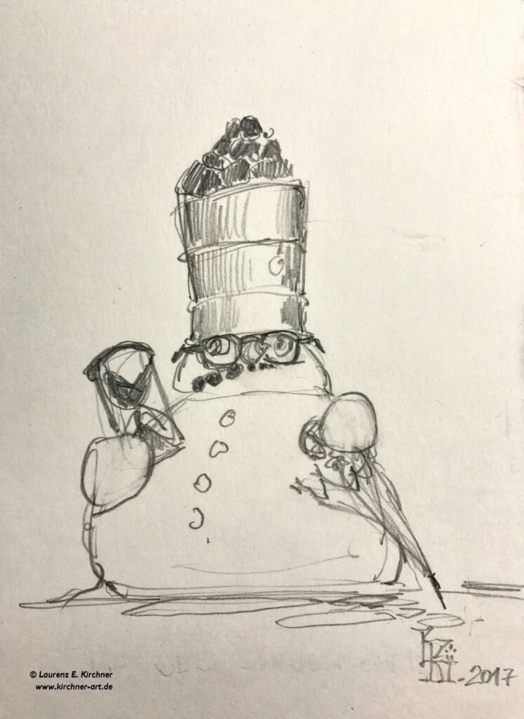 Auch wenn’s winterlich schneit… 11. Januar 202312. Dezember 2017 Auch wenn’s winterlich schneit, Kohle und Öl machen dem Schneemann immer mehr zu schaffen… Graphitzeichnung, 14 x 12 cm