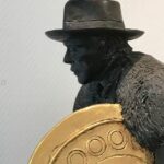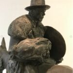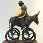Als Reiter wider den traditionellen Kunstbegriff rücklings auf einem Esel sitzend, hält Joseph Beuys die Sonnenscheibe im linken Arm und balanciert rechts einen seiner legendären Hasen, denen er die Kunst erklärt…