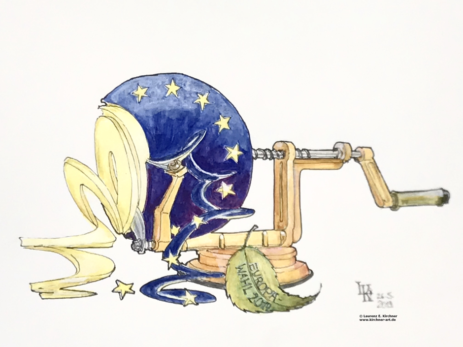 Das Bild spricht für sich. Der europäische Apfelschäler kann 3 Aufgaben simultan bewältigen: schälen, entkernen und segmentieren…