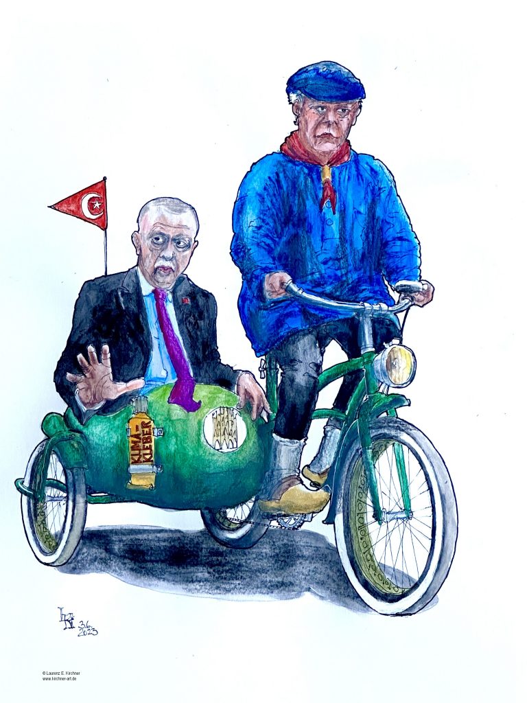 Der Kiepenkerl lässt sich nix anmerken, tiefenenspannt. Aber Mettenden, Schinkenhäger oder sogar echte demokratische Umgangsformen beispielsweise dürften sich trotzdem nicht in seinem Gepäck nach Ankara befinden…
