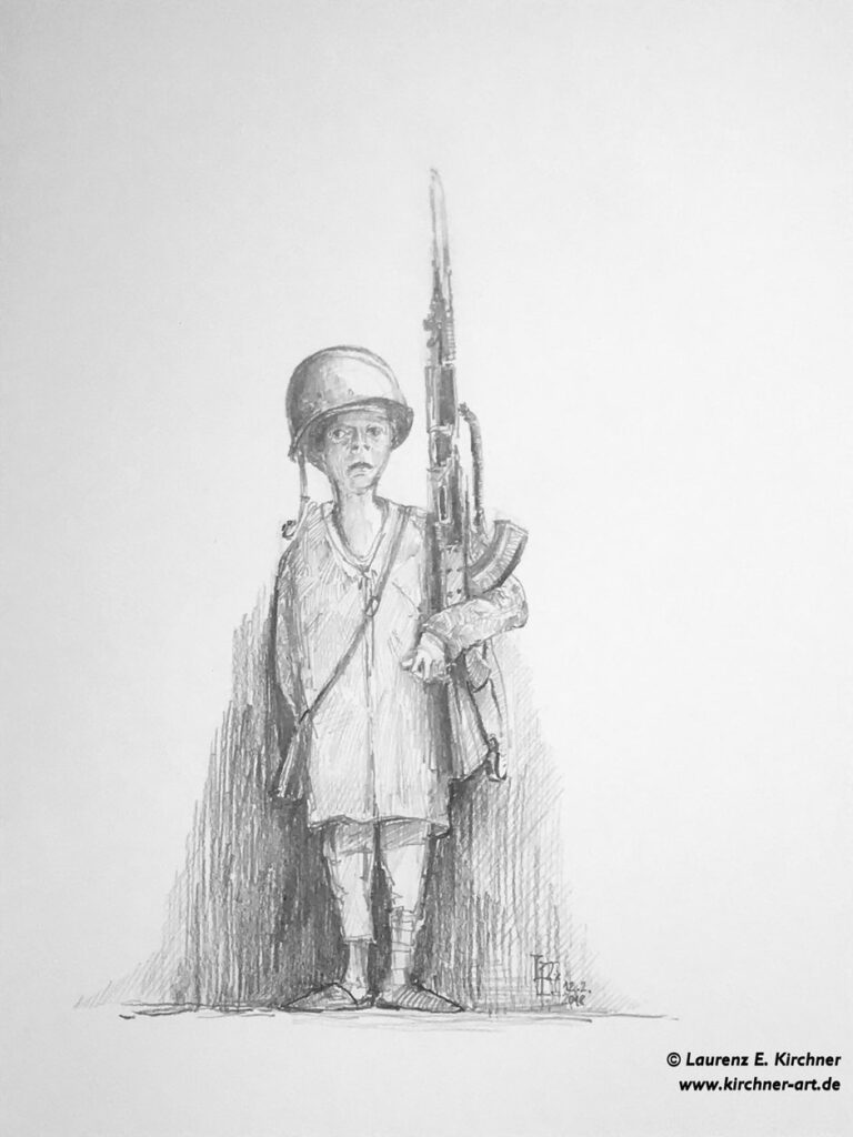 Hier am Rosenmontag bücken sich Kinder beim Passieren des Karnevalszuges nach Bonbons oder ähnlichem, was nach Kamelle aussieht und in vielen Kriegsgebieten werden Kinder und Jugendliche, geschätzt 250.000 weltweit, als bewaffneter Teil des Kriegsapparates zu Soldaten gepresst, in Minenfelder getrieben oder zur Spionage benutzt.