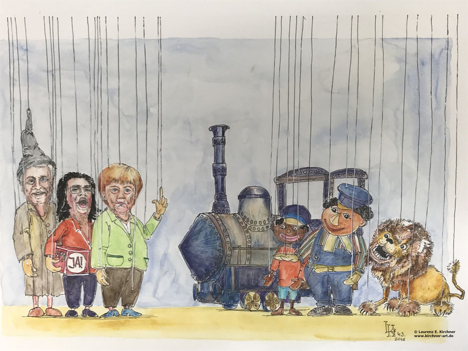 Ganz links Horst Seehofer im Gewand des Scheinriesen, sowie Angela Merkel und Andrea Nahles as its best…!