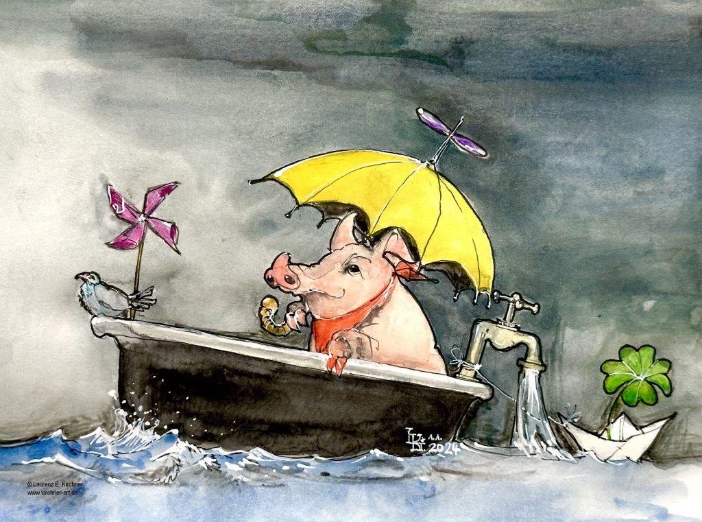Wir, die Friedenstaube und das Glücksschwein kommen da durch… (Kanzler Scholz meinte auch alle anderen, aber wenn die kein Boot mehr erwischt haben?) Mit Windkraft und Heckwasserrückstrahlenergie geht’s ohne Carbonara voran; Solar ist ja bei dem Schietwetter nicht lieferbar!