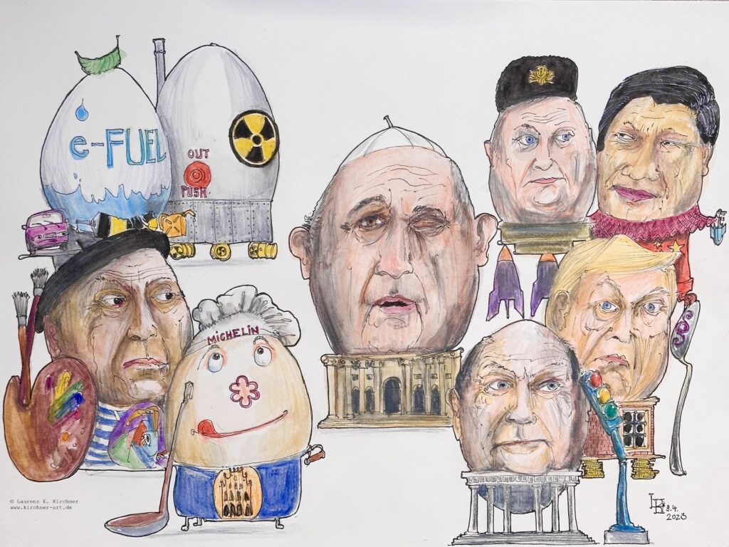 Hätten auch Zwölf oder 21 sein können, aber zuviele Eier sind auch nicht bekömmlich! Picasso zum 50. Gedenktag, die unverzichtbaren Energieeier, das Feinschmeckerei, Putin, Xi, Trump und Olav inklusive. Franziskus meditiert…