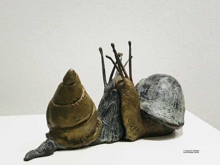 ,For The Love of the Snail‘ ist der Titel der vergoldeten Skulptur, die von einer Schnecke …