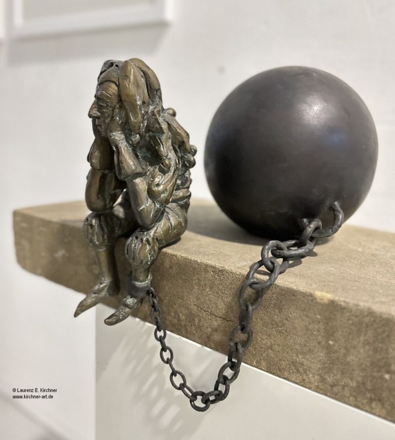 Der Harlekin als Ausdruck der Freiheit und Fröhlichkeit schiebt Trübsal mit einer Riesenkettenkugel. Dabei wäre …
