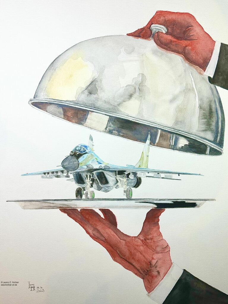 Es ist angerichtet. Die MIG 29 aus russischer Produktion, von Deutschland noch aus DDR-Beständen stammend …