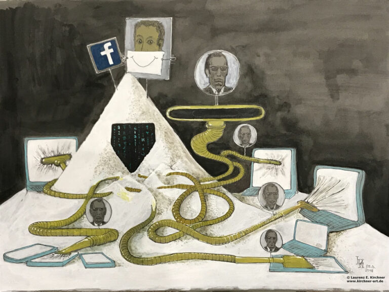 Der verlockende Zuckerberg von seinem Schöpfer Mark beinhaltet ein System von Datensaugern, die sich gierig …