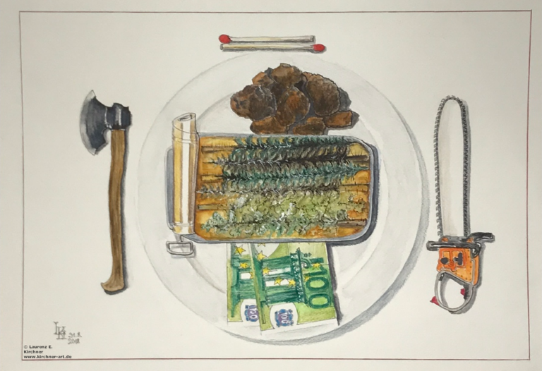 Es ist angerichtet…! Bäumlinge , handversägt mit Sägehilfe, in Olivenöl an Braunkohle und Euro-Grünkohl. Zum …